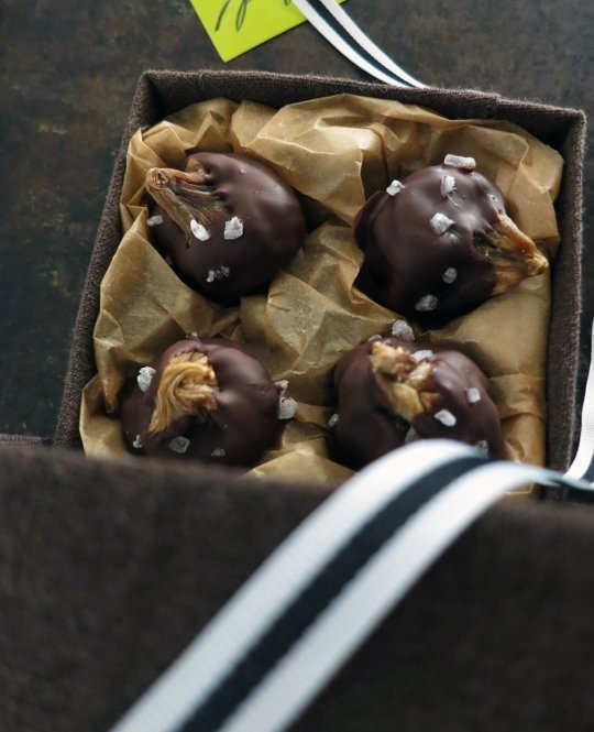 Dried figs are a sweet and easy treat any day, but dip them in chocolate and sprinkle with a little sea salt and they become a treat worthy of anyone’s holiday gift list.